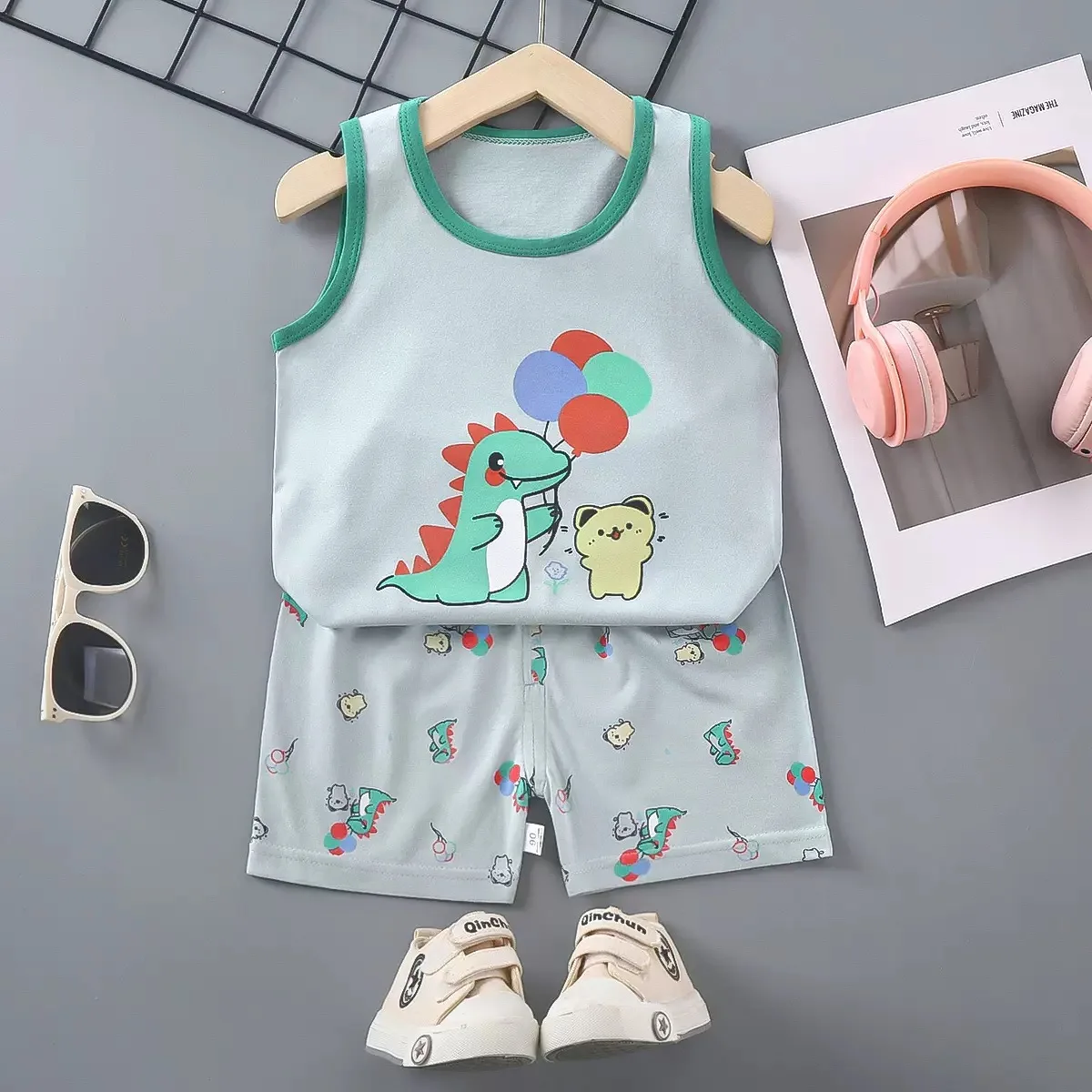 This kids cotton summer set is designed for warm‑weather comfort and easy daily wear. The outfit includes a sleeveless top or tank and matching shorts, giving a simple, coordinated look. Soft cotton fabric keeps little ones cool and gentle on sensitive skin. Lightweight material lets children move freely during play, outings, or naps in the heat. The elastic waistband on the shorts ensures a secure, comfortable fit that stays put through running or climbing. The sleeveless top makes dressing fast for busy mornings or quick changes. Unisex styling works well for boys or girls, so it’s easy to share or gift. Durable stitching holds up to frequent washing and outdoor fun. The minimal, casual design pairs with sandals, sneakers, or hats without fuss. Easily packed for travel, daycare, or visits to the park. Ideal for infants, toddlers, and young kids who need something cool, cute, and practical. A simple, breathable, and stylish outfit set that covers all the basics for summer days.